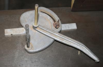 I have quite a collection and very rarely do I come across something I can't identify, but this one has me stumped. I inherited a shop full of great old tools from my grandfather who retired from a career as a patter-maker and machinist. This accessory was in his stuff. It fits standard miter slots in my table saws, router tables, oscillating spindle sander, and belt/disc sander. The long arm has a sharp pin on the bottom. What this thing does, I am dying to know!